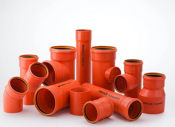 Prince Foamfit Pipes & Fittings multi-layer drainage and sewerage pipes offer an advanced solution for housing projects and government infrastructure developments. The outer and inner layers provide excellent load-bearing strength, while the middle layer adds structural stability, resulting in a pipe that is stronger yet lighter than traditional solid wall PVC pipes.